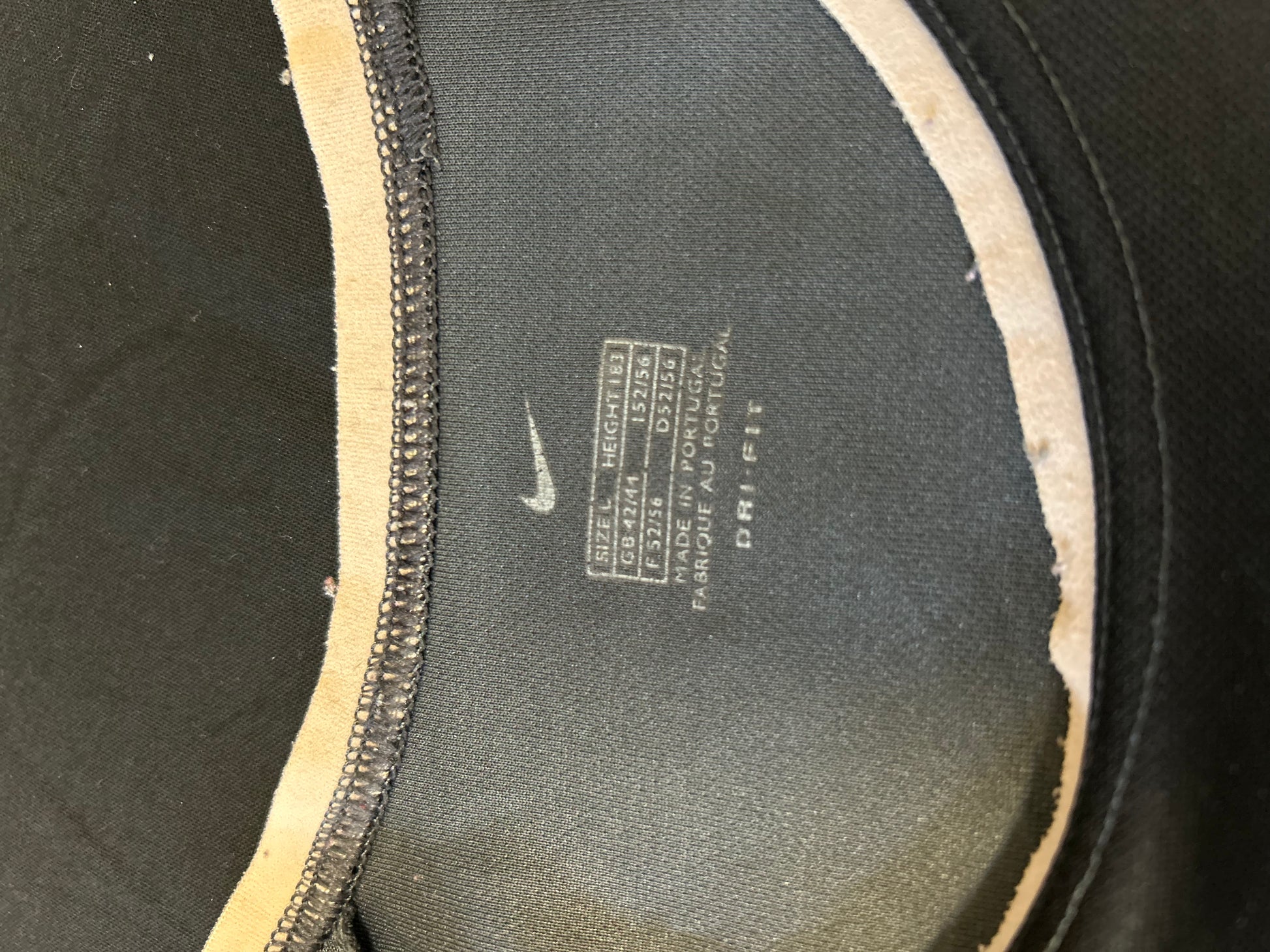 Flaws: Minor natural signs of age – light bobbling typical for early 2000s fabric, no holes or stains, slightly cracked sponsor