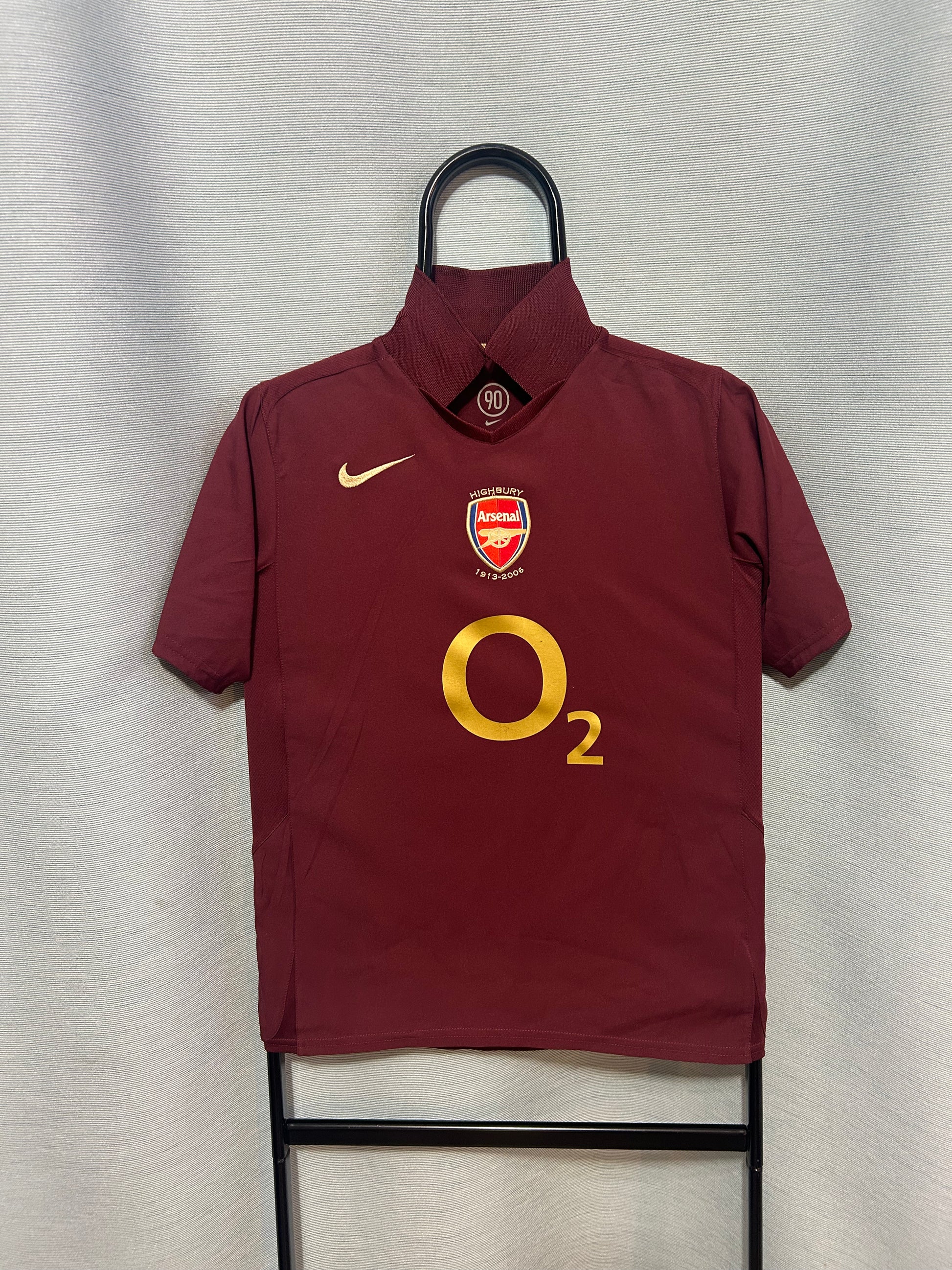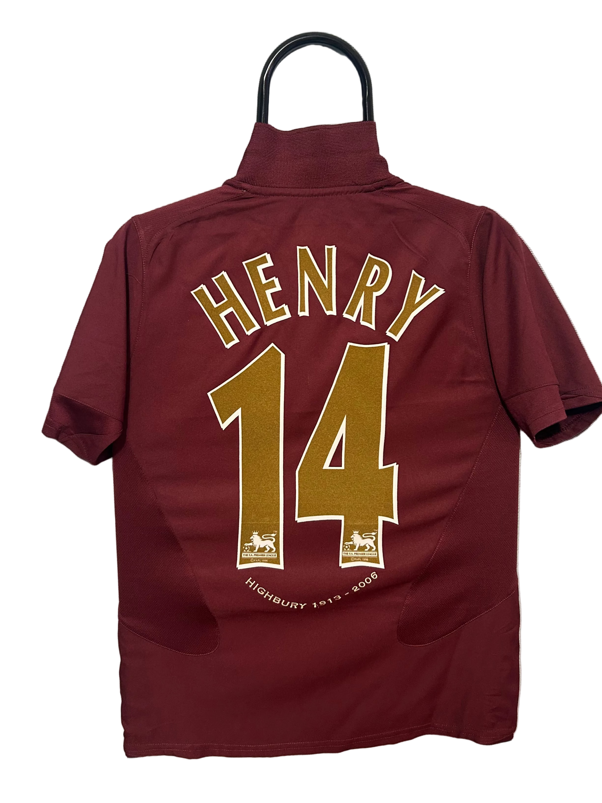 This authentic Arsenal Home jersey from the 2005-2006 season features Nike’s special edition “Highbury 1913–2006” design, created to honour the club’s historic departure from the famous stadium. The burgundy colour, golden detailing and classic Henry #14 make this shirt instantly recognisable and extremely collectible.