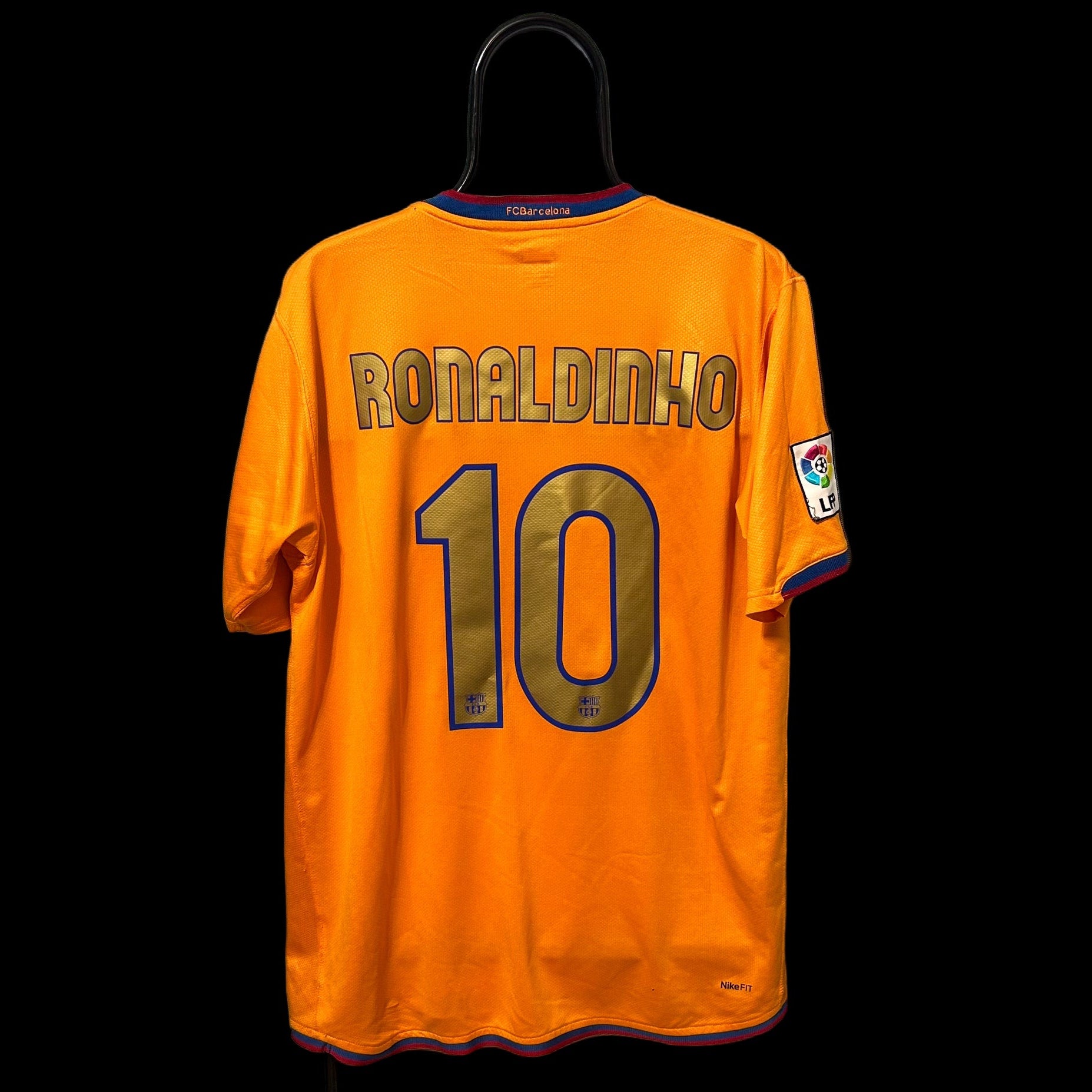 This shirt comes from Ronaldinho’s prime period at FC Barcelona, shortly after winning: