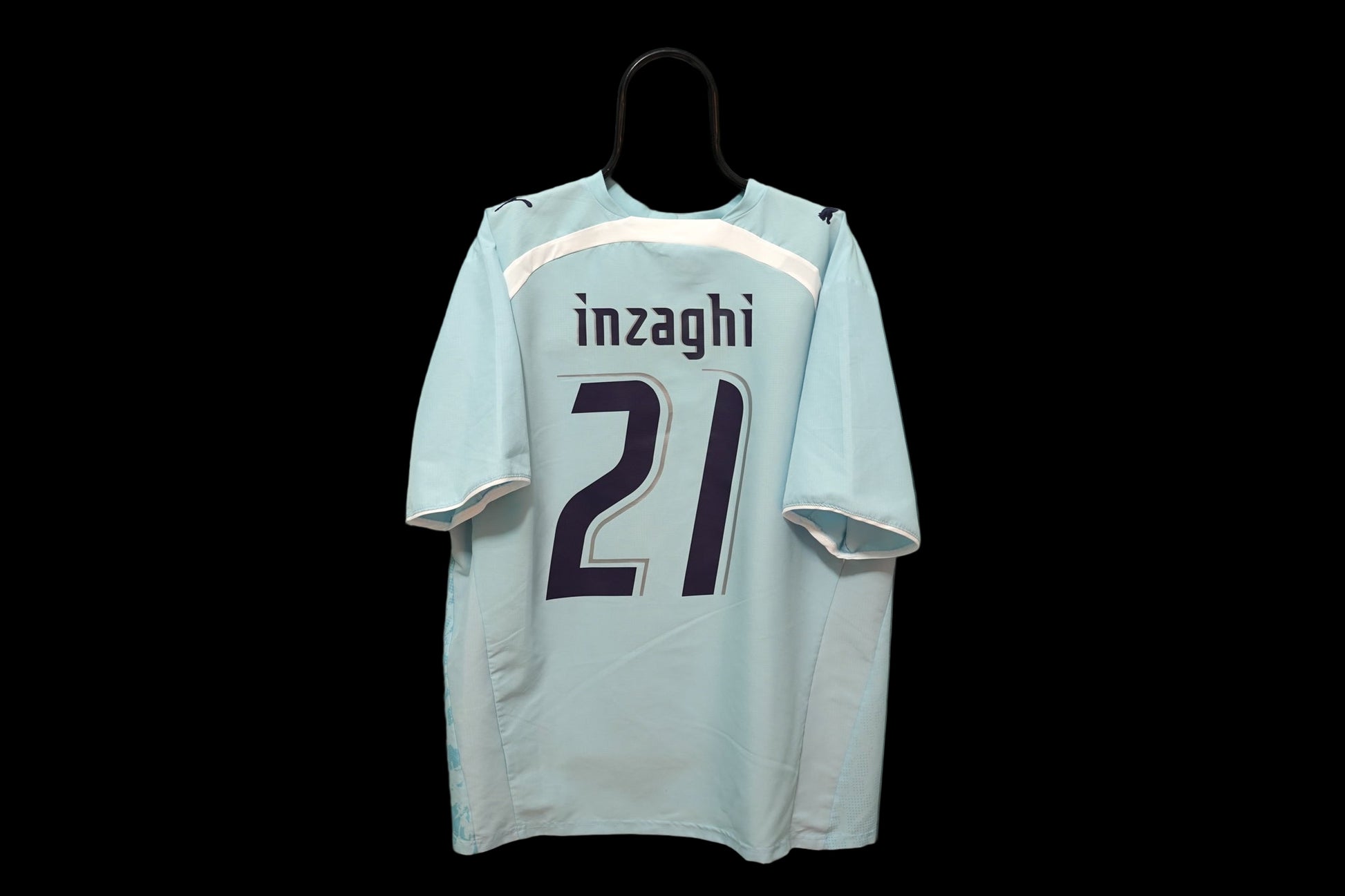 A classic Lazio Home Jersey from the 2006–2007 Serie A season, featuring striker Simone Inzaghi with #21.