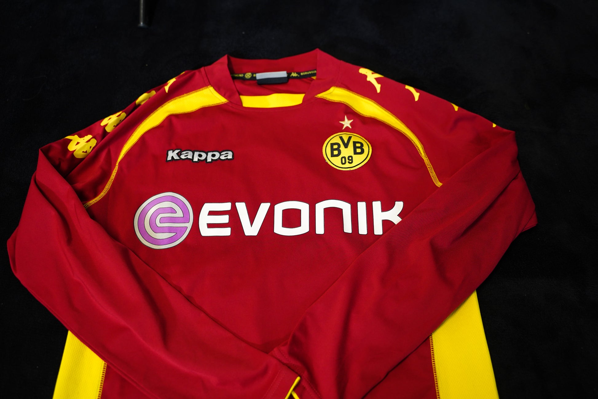 Produced by Kappa, this shirt comes from the early years of Jürgen Klopp’s tenure — when Dortmund was rebuilding into the dominant side that would soon conquer Germany and Europe.