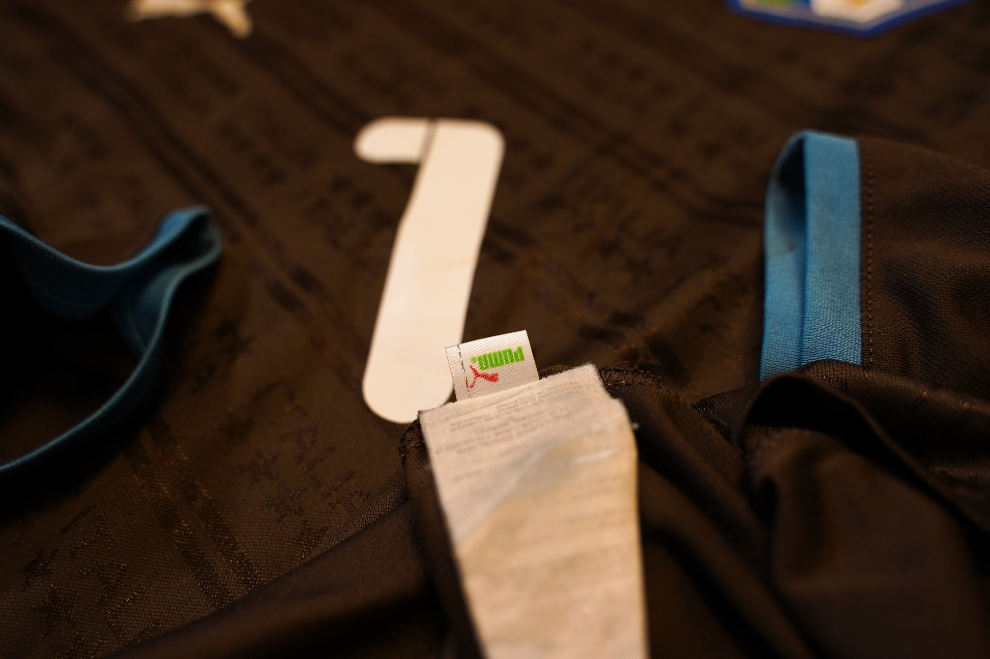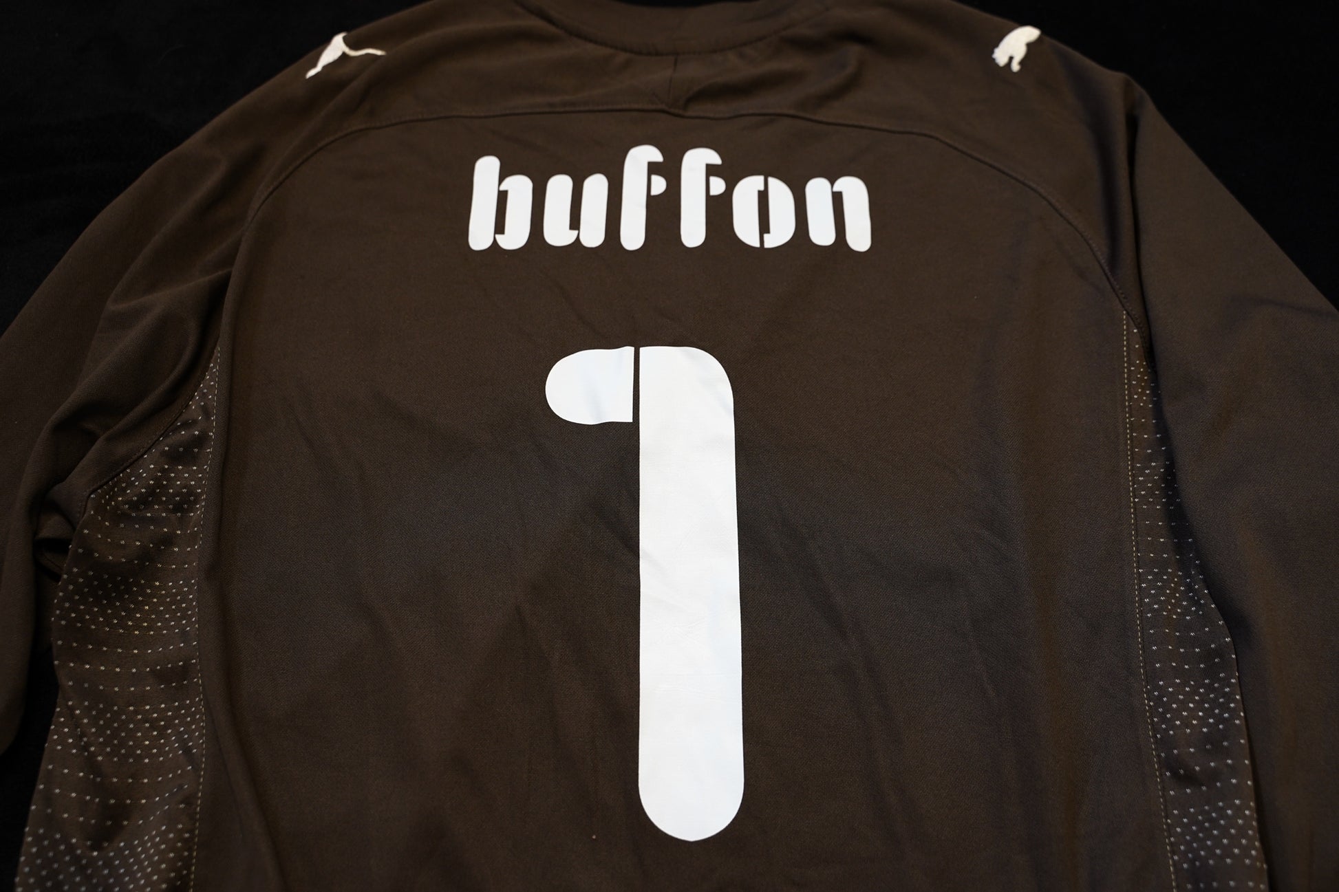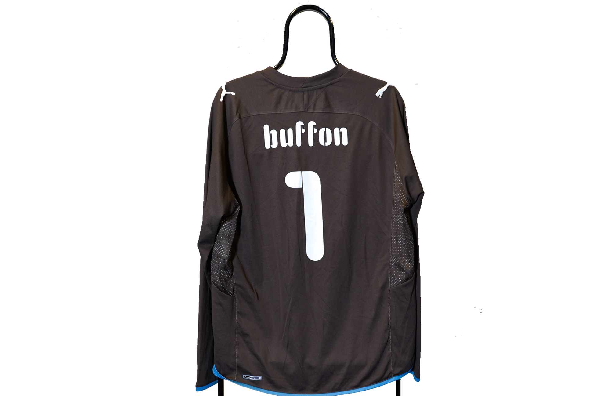 Produced by Puma, this long-sleeve bronze shirt was part of Italy’s official goalkeeper range leading into the 2010 World Cup — a bold and elegant design worthy of one of the game’s greatest ever goalkeepers.