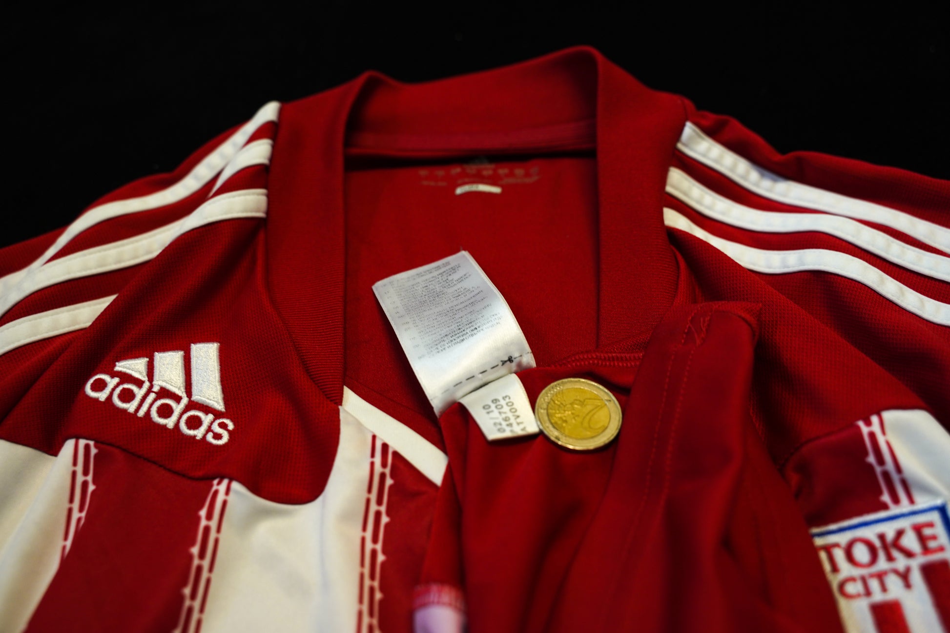 Produced by Adidas (model P46709), this shirt comes from a memorable season when Stoke reached the FA Cup Final, marking one of the most successful campaigns in the club’s modern history.