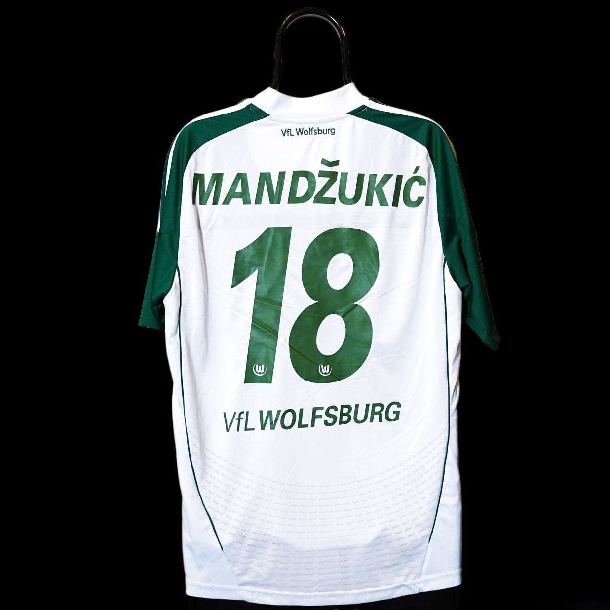 Own a shirt worn during the early Bundesliga years of Mario Mandžukić, before he became a Champions League winner and one of Europe’s most feared strikers. This VfL Wolfsburg 2010–2011 Home Jersey by Adidas (code U40807) features the classic green design and Mandžukić’s number 18 on the back.