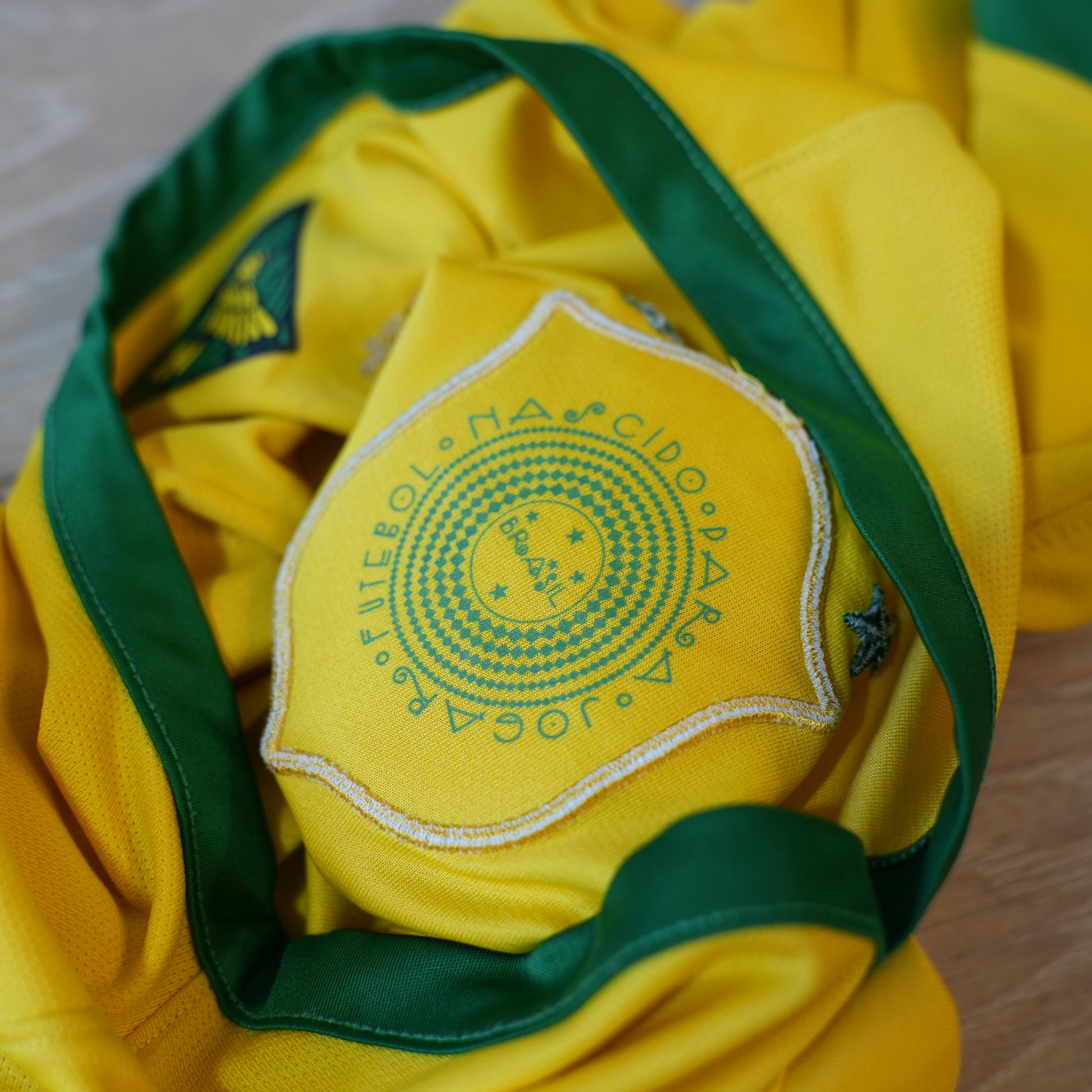 Produced by Nike, catalog number 575280-703, this shirt comes in Brazil’s iconic bright yellow with green detailing. Size S.